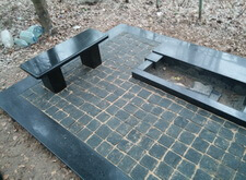 Первым делом на месте захоронения был проведен демонтаж всего, что там было. Сооружен бетонный ленточный фундамент. Уложена гранитная подложка под ограду, подставка под памятник, цветник и лавочка, также все свободное пространство могилы закрыто гранитной брусчаткой. Кстати, изначально лавочка была установлена иначе, чем обсуждалось и ее пришлось переустановить, хотя на могиле именно первый вариант установки был более привлекателен.